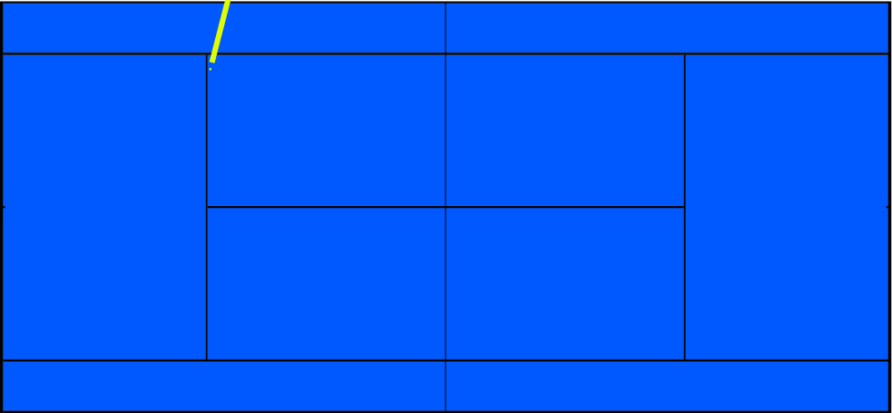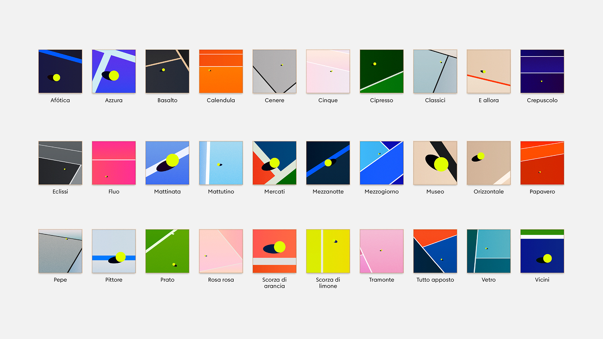 One of our key parameters requires each composition to reveal at least one line of the court and two fields of color.