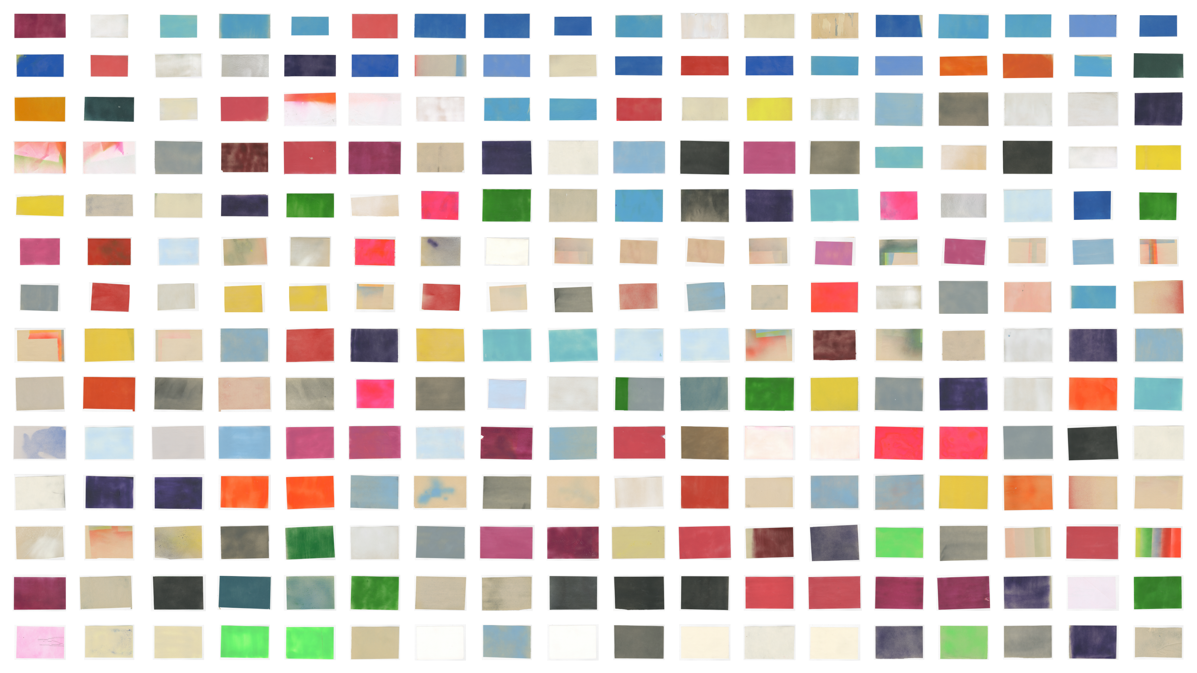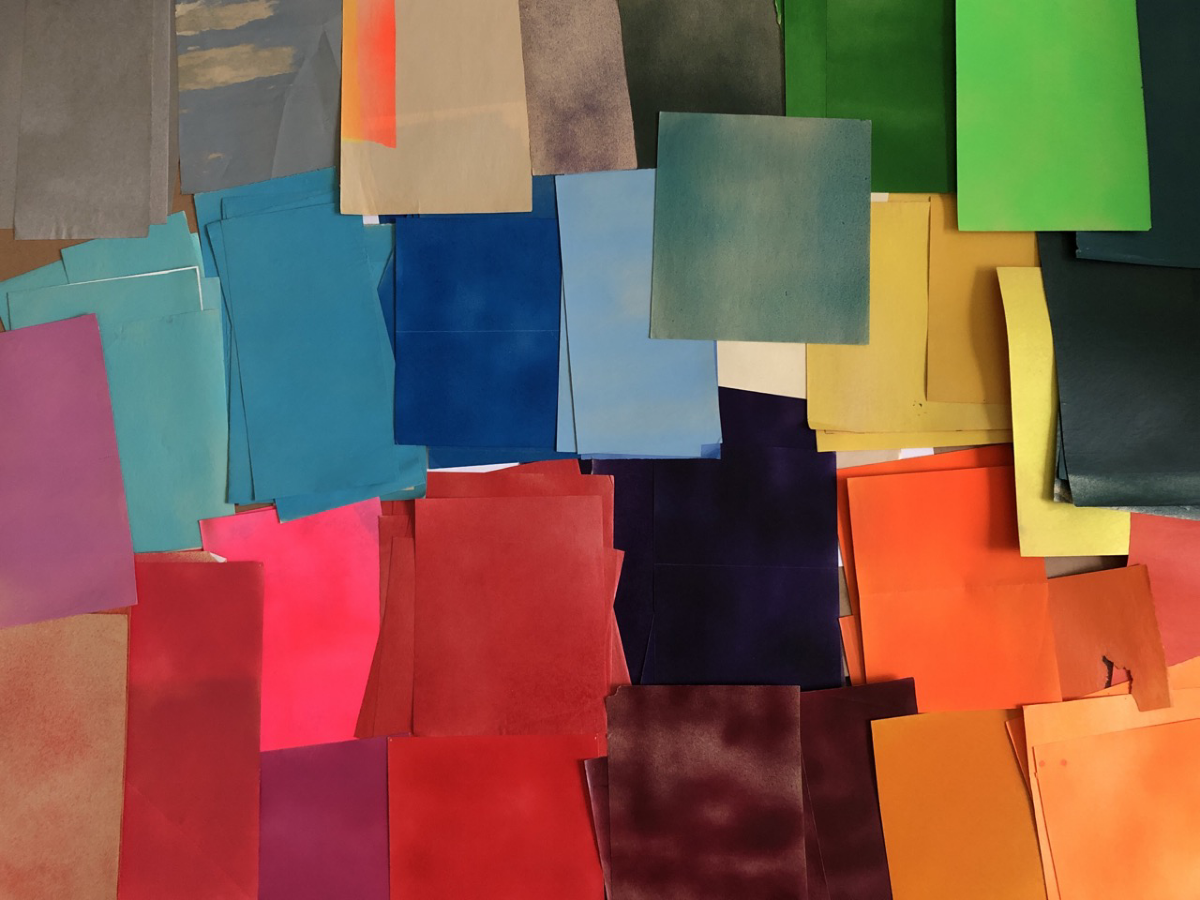 TAM began in #### when mg was experimenting with the translation of flat digital color to various physical media. what started with printing out black rectangles on a xerox machine led to spray painting hunderred of scrap pieces of paper, the texture created by the underlying paper, the makeup of the paint, the intensity, distance, direciton, layering, movement of the spray ... created textures, unexpected compositions, subtle nuances ...