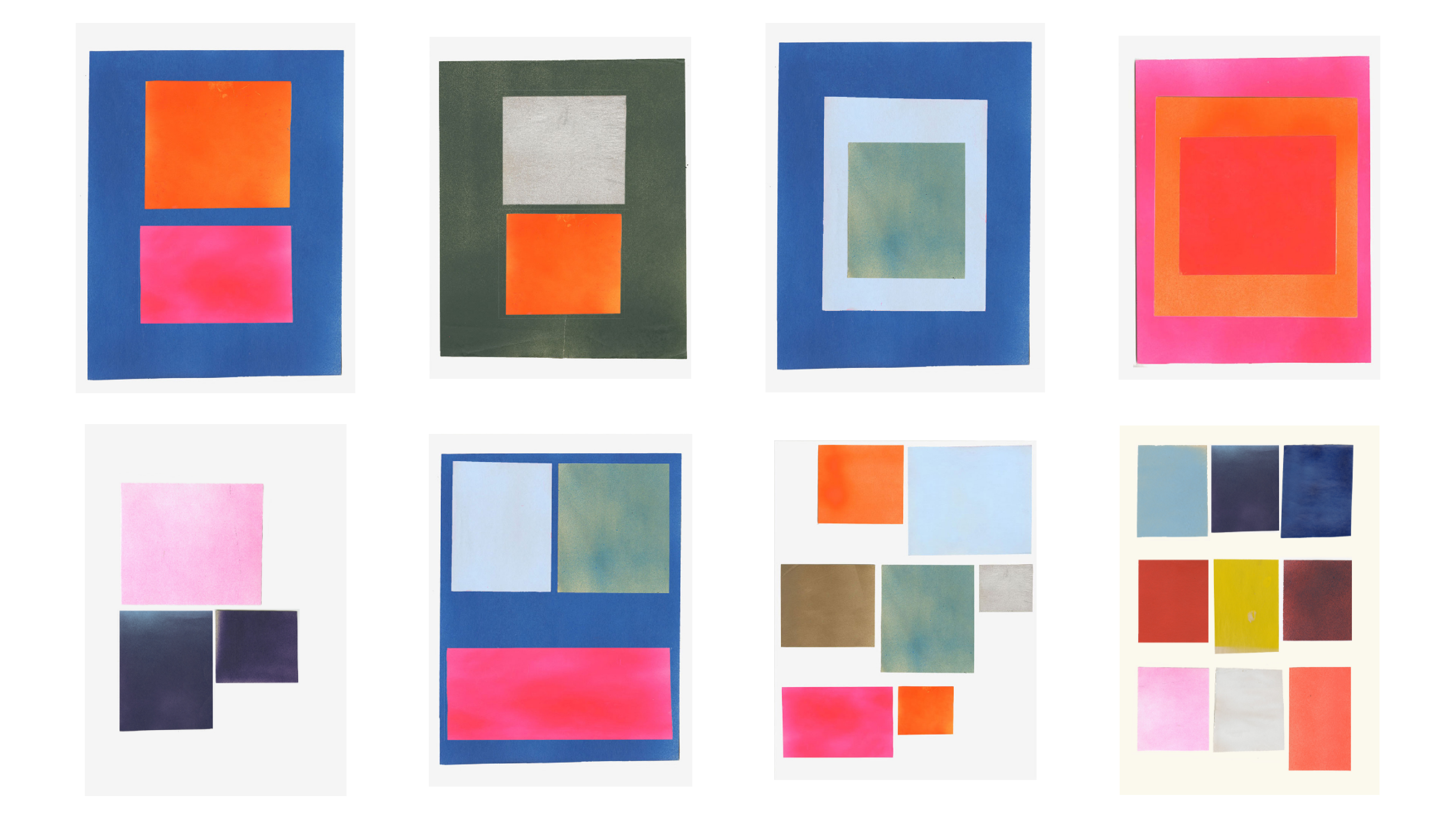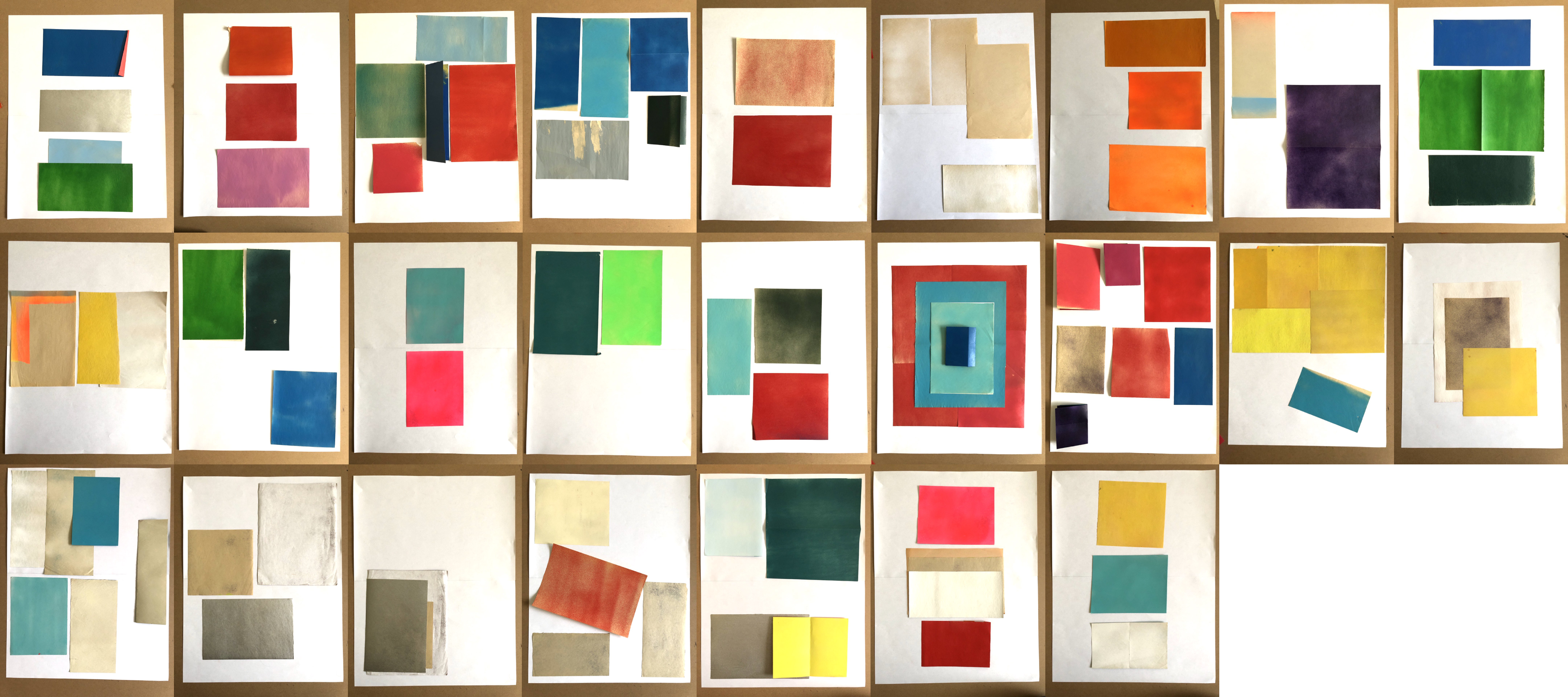 returned to these compositions and papers again and again. pleasure in seeing new adjancencies, color stories from simple shapes and color, the speed and casualness of the exercise.