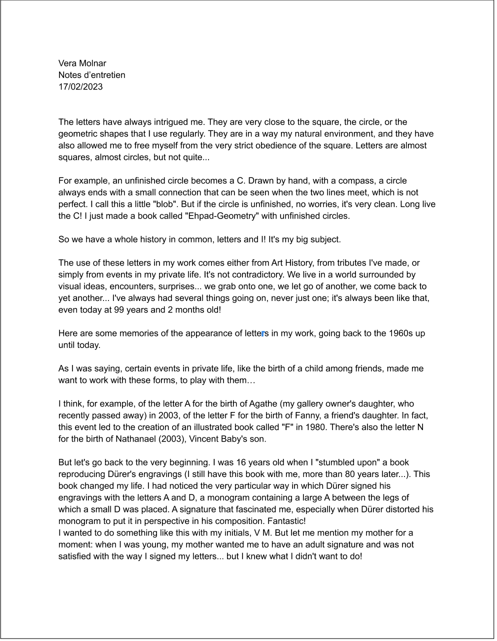 departure from vm's oeuvre, known works. unexpected outcomes truly a dialogue. as algos let us imagine- inserting randmness into the process and creating artworks we would not have never made ourselves. letting the algo run, and from its outputs, in Vera's fashion, curating what we loved best. starting with human intuition and finishing with it.